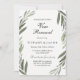 Plain white envelopes are included with paper invitations and will come to fit the invitation size you select. If you don’t need the envelopes, you may choose to not receive them by selecting the dropdown below "Envelopes" and choosing "None." If you’d like to have a design on your envelopes, you can browse all of these available envelopes to find the design that complements your Watercolor Green Leaf Vow Renewal Invitation.