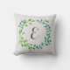 Watercolor Green Leaf Wreath | Monogram Throw Pillow