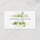 Stylish business card featuring watercolor green foliage with modern typography. This business card is perfect for any business or profession.