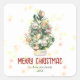 Watercolor Green Ornaments Tree Merry Christmas Square Sticker