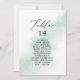 These watercolor green table number seating chart cards are perfect for a modern wedding. The simple and classic design features a splash of pastel sage green water color with minimalist elegant style. The card prints on the front and back (double-sided).