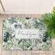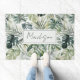 Watercolor Green Tropical Forest Leaves Pattern Doormat