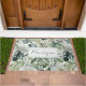 Introducing our Watercolor Green Tropical Forest Leaves Pattern Doormat. Featuring a beautiful watercolor illustration pattern and customizable monogram written in a modern elegant font. Suitable for nature lovers.