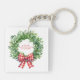 Watercolor Green Wreath With Red Gingham Bow Keychain