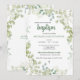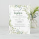 Green watercolor leaves gather in the corners of this invitation to frame your text inviting guests to join you to celebrate a baptism. The image repeats on the reverse where you can add more text or delete it to leave the back blank or add a photo. Appropriate for a baptism, christening or new baby announcement.