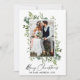 Modern Minimalist Elegance Calligraphy Ink Pen Handwritten Script Merry Christmas Photo Holiday Card includes Elegant Watercolor Greenery & Eucalyptus Leaves. Newlywed Couple Wedding Photo.