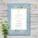 Watercolor Greenery Dusty Blue Boy Baptism Invitation