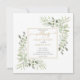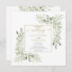 Watercolor Greenery Gold Geometric Script Wedding Invitation