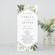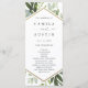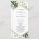 This wedding ceremony program features painted watercolor eucalyptus, green leaves, flowers with a faux gold geometric hexagon frame. For more advanced customization of this design, please click the "Customize further" link. Matching items are also available.