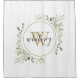 Watercolor Greenery Gold Monogram Chic Script Shower Curtain
