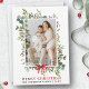 Watercolor Greenery Merry Christmas Red Bow Holiday Card