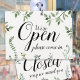 Watercolor Greenery Open Closed Sign