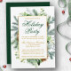 Watercolor Greenery Pine Holiday Party Gold Invitation