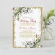 Watercolor Greenery Red Berries Glitter Holiday Invitation