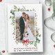Watercolor Greenery Red Bow First Christmas Holiday Card