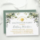 Watercolor Greenery Sage Green Gold Grad Party Invitation