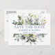 Modern Elegant Watercolor Botanical Greenery Wedding Engagement Announcement Save The Date Postcard includes eucalyptus leaves, green botanical foliage, dusty blue leaves and other beautiful botanical greenery.