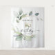 Your guests will LOVE posing in front of this stunning backdrop! This is sure to be the hit of the event! This can be used as a fun photo prop backdrop or a beautiful wall decoration! This elegant design features a soft watercolor wreath of eucalyptus, greenery and gold embellishments. Click the Personalize and "Click to customize further" button to edit the wording's color. See the entire collection for more matching items!