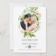 Trendy greenery wedding save the date card with gold frame designed to be quickly and easily customized to your event specifics.
