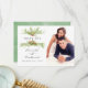 Green and white wedding thank you cards featuring ferns, wildflowers and strawberries and a sage green watercolor wash background.