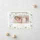 Elegant and whimsical photo birth announcement featuring watercolor pattern of greenery and white flowers. This greenery photo birth announcement is perfect for gender-neutral baby birth announcements. Personalize by adding photos and details.