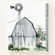 Watercolor Barn I by Jennifer Paxton Parker. Grey-white colored barn with greenery and a small windmill.