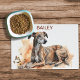 Transform your pet's dining area into a stylish haven with our Watercolor Greyhound Dog Food Mat. This beautifully designed mat features an enchanting watercolor portrait of an adorable brindle Greyhound, brought to life with warm, natural color tones that seamlessly blend with any home décor. This mat is not just functional but also a piece of art. The warm, earthy tones of the background create a cozy and inviting atmosphere and protects your floors from spills and stains. This mat not only serves a practical purpose but also adds a touch of elegance to your home. The beautiful watercolor design is perfect for dog lovers and art enthusiasts alike. An ideal gift for Greyhound owners or anyone who appreciates unique pet accessories. Surprise your friends or family with a thoughtful and stylish addition to their pet's dining area. Edit text from the product page or to change font style or color, use the design tool.