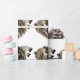 Strong glossy paper with beautiful photos of real bears. Photos are not small but about 4 1/2 x 5 1/2 inches. Great for wrapping gifts for bear lovers. The images are great - lovely brown tones on white background. My husband loved them.