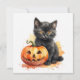 Watercolor Halloween Black Kitten and Pumpkin Holiday Card