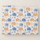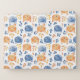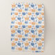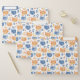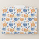 Here's a cute trio of file folders for anyone who loves cats! The outside of each of these folders has a pattern of blue and orange smiling cat faces, surrounded by matching leaves. The inside of each are a different solid color. One is blue, one is white, and one is orange.