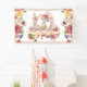 Watercolor floral Happy Easter banner sign feature adorable woodland bunnies surrounded by flowers and "Happy Easter" banner.