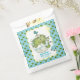 Get ready to roar with excitement! These charming favor bags are the perfect way to thank your guests for celebrating your little one. The design features a sweet watercolor illustration of a baby dinosaur hatching from its egg, surrounded by foliage, a charming bird, and a cute little blue dino car all on a light blue background with a subtle dino footprint pattern. The bag can be personalized with the mother's name and the date of the baby shower, making it a unique and memorable keepsake. Ideal for a boy's baby shower, these bags can be filled with treats, small toys, or party favors. The fold-over top is secured with a small clothespin (not included), adding a rustic and cute touch.
