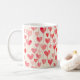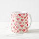 A white coffee mug featuring an all-over watercolor heart pattern with soft, hand-painted textures and a romantic artistic feel. The repeating heart design wraps smoothly around the mug, creating a charming and cohesive look that adds a gentle, warm touch to everyday drinkware.