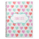 This notebook is super cute with its lovely colors and pretty watercolor heart design. Personalize this notebook to make it yours!