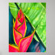 Beautiful original art painting of colorful tropical heliconia lobster claw flower art. Bright vibrant colours. Watercolor fine art.