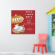 Promotional poster for farm fresh eggs! Watercolor laying hen in nest with wooden "eggs" arrow sign on dark red background. Add your own additional text for contact details, price, etc.