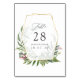 Woodland greenery wedding table number cards featuring wild herbs, ferns and leaves with gold geometric frame customizable to your event specifics.