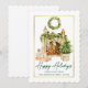 Watercolor Holidays Calligraphy Ink Gold Frame Holiday Card