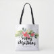 Modern and whimsical Christmas personalized tote bag featuring watercolor holly wreath and brush typography. This is a part of a holiday set - matching stamps, stickers, and labels.