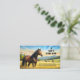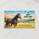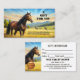 Gift certificate template designed for horse or pony riding lessons, featuring a watercolor painting of horses in a colorful landscape. It is ideal for use at a ranch, equestrian center, or any establishment providing horse riding instruction. Additionally, this card can serve as a standard business card.