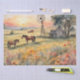 In the tranquil watercolor scene, gentle hues of pink and orange blend seamlessly as the sun rises over a serene field dotted with sun flowers.