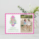 Watercolor Hot Pink Bow Ginger Jar Christmas Photo Holiday Card