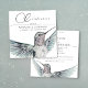 A hand-painted watercolor hummingbird with stunning detail and subtle hues of aqua and rose decorates this unique, delicate and loving celebration of life invitation in classic black and white