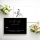 A hand-painted watercolor black and white hummingbird on an elegant wedding response card