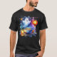 My 11 yo wore adult XL (5’7” 165#). The 8yo is small framed. She wore adult small and tied it in the back. Grandma wore adult large with long sleeve shirt underneath. Tall girl adult medium. Dark haired male adult large. Good quality dark Heather gray, Gildan brand shirt. -it was next up from basic choice and cost about $20 per shirt. Not too thick or thin. Washed and dried well, no major shrinkage. Not see-through. Can wear a bra under it fine. Screen print is just as shown and well done, front and back.