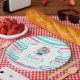 This hand-painted watercolor design, featuring an enticing ice cream sundae topped with a cherry and accompanied by cookies, transforms into a delightful party plate for a baby shower. The vibrant, whimsical artwork perfectly captures the sweetness and joy of welcoming a new baby, making it a fantastic choice for the occasion. Ideal for guests who appreciate playful and artistic elements, these plates add a cute and colorful theme to the celebration. Use these beautiful and unique plates to serve snacks or cake, enhancing the festive atmosphere and sure to bring smiles to everyone at the party.