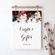This watercolor illustrated fall cards and gifts sign is perfect for a simple wedding or bridal shower. The design features artistic hand-painted watercolor navy blue, burgundy, red, blush roses and peonies with elegant green leaves, inspiring the colorful idyllic autumn beauty.