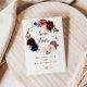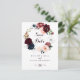This watercolor illustrated fall floral save the date postcard is perfect for a modern wedding. The design features artistic hand-painted watercolor navy blue, burgundy, red, blush roses and peonies with elegant green leaves and a wreath, inspiring the colorful idyllic autumn beauty.