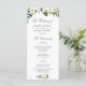 A lovely greenery floral design with ivory white flowers on white background. You can personalize the text and colors on this wedding program template.