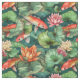 A beautiful fabric with a seamless pattern of koi, water lilies, and water lily pads.